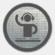Un autocollant DJ cool. Un arrière - plan en métal avec les lettres DJ et un pictogramme noir d'un dj derrière ses roues.