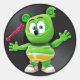 Autocollant rond avec Gummibär, l'ours de gomme préféré de tous.