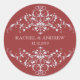 Des ornements antiques romantiques en blanc contre un arrière - plan rouge profond servent de cadre à cet autocollant. Customisez-le avec votre nom et la date de l'événement. Cochez-le sur des enveloppes ou de la correspondance, des sacs de protection, des boîtes étiquettes, etc. Un autocollant adapté à toutes les occasions : mariages, fêtes de fiançailles, une sauvegarde de la date ou un événement d'entreprise. Disponible en couleurs alternatives avec cartes assorties, faveurs et postage.