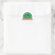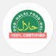 Sticker du certificat d'alimentation halal. Cet autocollant est une marque de certification islamique indiquant que le produit auquel il est apposé est halal, ce qui signifie qu'il respecte les lois alimentaires islamiques. Le mot "Halal" est écrit en arabe et en anglais. Cet autocollant peut être utilisé sur l'emballage alimentaire, les conteneurs et les étiquettes pour indiquer que le produit est autorisé à la consommation par les musulmans