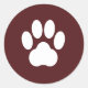 Rond Sticker Empreinte de patte Maroon