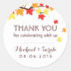 Avoir un mariage à l'automne ? Cet autocollant de remerciement est un complément parfait à votre journée spéciale. Décoré de couleurs automnales vives et colorées, jaune, orange et marron. Design classique et vintage. Feuilles d'érable tombant de l'arbre. Tombe de nouveau amoureux cet automne. Customisez et personnalisez le libellé pour convenir à toute occasion. fête d'anniversaire, anniversaire, douche nuptiale, baby shower, fête de fiançailles ou autre avec thème d'automne. Visitez mon magasin pour obtenir un faire-part de mariage correspondant.