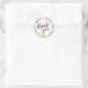 Une jolie couronne de fleurs délicates et de verdure entoure la typographie douce et cursive de cet autocollant de Fête des mariées féminine ou de fleurs mariages. Montré avec un doux arrière - plan rose pastel, mais peut être facilement customisé pour correspondre à votre schéma de couleurs.