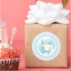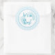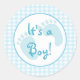Autocollant rond avec une image de en vichy bleu bébé et pieds bleu bébé dans un cercle blanc avec une bordure bleue. Texte facultatif. Voir le papier d'emballage correspondant. Consultez la collection Kidz Korner Sticker dans sa catégorie CARDS & STICKERS dans la section KIDZ KORNER.