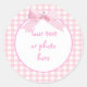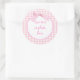 Autocollant rond avec une image de en vichy rose et blanc. Le cercle blanc personnalisable a une bordure rose vif et un joli arc rose en option avec des détails de cône crème glacée. Voir le papier d'emballage correspondant. Consultez la collection Kidz Korner Sticker dans sa catégorie CARDS & STICKERS dans la section KIDZ KORNER.