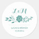 Rond Sticker Favor Fleur turquoise et feuille de couron