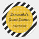 Un autocollant de faveur moderne et attrayant. Ce étiquette est idéal pour un thème de stars de cinéma hollywoodiennes. L'arrière - plan a un motif d'étoiles dorées avec une bordure à rayures noir et blanc. Design amusant pour une fille charismatique avec un sens du glamour. Utilisez-le pour des faveurs de fête ou pour sceller des enveloppes.