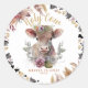 Ajoutez une belle touche à votre fête d'anniversaire de cowgirl avec cet autocollant floral "Holy Cow" pour le premier anniversaire ! Doté d'une vache à l'aquarelle douce, de fleurs à l'automne et d'accents d'impression de vache, ce étiquette rond est parfait pour sceller des sacs de faveur, des cadeaux ou des enveloppes. Personnalisez-le avec le nom de votre enfant et la date de la fête pour une finale coordonnée et charmante.