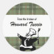 Une illustration vintage d'un chef contre un arrière - plan vert plaid forment la base visuelle de ce mignon autocollant. Utilisez l'expression "De la cuisine de" ou faites-la vous-même et ajoutez votre nom (ou celui d'une autre personne). Il y a assez de place ci-dessous pour écrire votre nom de plat. Disponible dans d'autres modèles et combinaisons de couleurs.