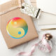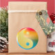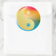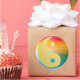 Autocollant rond avec l'image d'un symbole yin et yang qui est mi-or et mi-métallique rouge, vert, bleu et jaune. Voir confettis assortis, sac de faveur, étiquette de faveur et papier d'emballage. Voir l'ensemble de la collection Psychedelic Sticker des années 60 dans les INVITATIONS | Section Stickers & Étiquettes. Ce produit n'est pas associé ou affilié au titulaire du droit d'auteur d'origine.