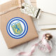 Autocollant rond avec l'image d'un Lion bleu et jaune de Juda emblème et larges doubles bordures bleues découpées en bleu clair sur blanc. Voir étiquette correspondant. Consultez la collection Hanoukka Sticker dans sa totalité sous la catégorie CARDS & STICKERS dans la section VACANCES.