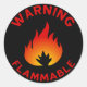 Avertissement - Inflammable - autocollant noir avec un graphisme jaune-orange de flamme.