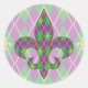 Un motif arlequin de vert et de violet se transforme en Jacquard ludique avec une superposition de silhouettes de diamants dorés et de fleur de lis, créant un motif amusant et coloré parfait pour toute célébration Mardi Gras influencée par la Nouvelle-Orléans. La motif est masquée derrière la silhouette d'une fleur de lis pour ajouter une note finale amusante.