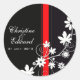 Rond Sticker Mariage à fleurs noir et rouge