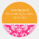 Rond Sticker Mariage damassé rose et orange