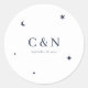 Rond Sticker Mariage monogramme simple céleste
