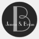 Rond Sticker Mariage noir et blanc Monogramme
