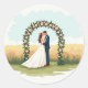 Comprend 20 petits autocollants sur une feuille. Illustration numérique élégante d'un couple marié sous une arche fleurie, parfaite pour ajouter une touche spéciale à vos souvenirs et messages mariages.