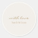 Chic With Love mariage autocollant avec belle police dorée contre un arrière - plan blanc cassé et blanc cadre circulaire et noms de couple.