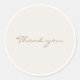 sticker chic mariage Merci avec belle police dorée contre un arrière - plan beige clair et cadre circulaire blanc.