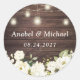 Sticker pour enveloppes en bois rustique Fleurs blanches Mason Jar. Éclairage à cordes Sticker Enveloppe Mariage en bois