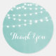 Chic moderne mariage faveur Merci design étiquette avec des lampes à cordes élégantes et simples accrochées sur le dessus et un mélange classe de polices de script modernes et calligraphie sur un arrière - plan imprimé fausse aquarelle texture. Un design simple et élégant, parfait pour l'été ! Cliquez sur le bouton CUSTOMISER IT pour customiser les polices, déplacer du texte et créer votre propre conception unique d'invitation unique.