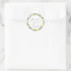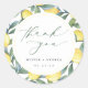 Magnifique élégant Merci botanique de citron favorise les autocollants. La conception de l'autocollant rond comporte une bordure citron aquarelle et un texte de script moderne. Customisez avec les noms des mariées et des champignon et la date du mariage. Peut également être personnalisé pour les douches nuptiales.