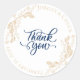 Étiquette de script "Merci" Gold Leaf Botanical and Navy Blue pour les faveurs de mariage, l'étanchéité des enveloppes ou l'ajout à l'emballage. Customisez avec vos coordonnées de mariage.