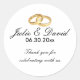 Cet élégant autocollant de remerciement de mariage est orné de deux anneaux de mariage en or au sommet. Customisez le texte en dessous avec vos noms.