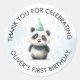 Ajoutez la touche de finition parfaite à vos faveurs de fête avec cet adorable sticker de remerciement sur le thème du panda ! Doté d’un panda d’aquarelle dans un casquette de fête entouré de confettis pastel doux et d’étoiles dorées, cet autocollant rond dit "Merci pour célébrer le premier anniversaire d’Oliver". Idéal pour sceller des sacs, des enveloppes ou des boîtes, et facile à personnaliser avec le nom de votre enfant. Idéal pour des soirées jungle, panda ou animalières !