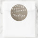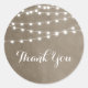 Chic moderne mariage faveur Merci design étiquette avec des lampes à cordes élégantes et simples accrochées sur le dessus et un mélange classe de polices de script modernes et calligraphie sur un arrière - plan imprimé fausse aquarelle texture. Un design simple et élégant, parfait pour l'été ! Cliquez sur le bouton CUSTOMISER IT pour customiser les polices, déplacer du texte et créer votre propre conception unique d'invitation unique.