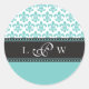 Rond Sticker Monogramme Mariage turquoise Fleur de lis