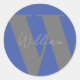 Rond STICKER Monogramme nom bleu gris élégant