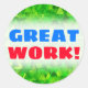 Ce design autocollant présente un motif abstrait de nombreuses formes triangulaires colorées de différentes nuances de vert. On pourrait peut-être dire qu'il ressemble à une forêt dense de conifères. Il présente également le dicton de motivation "GRAND TRAVAIL !" en bleu et rouge. Des autocollants comme ceux-ci pourraient peut-être être utilisés par un enseignant, un éducateur ou un tuteur pour encourager un étudiant qui a bien réussi un test, un quiz, du papier, un projet ou une autre tâche académique. [~Z0000117]