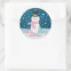 Beau autocollant bleu marine, rose et blanc de bonhomme de neige. Une touche finale amusante à vos cartes de Noël.