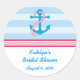 Autocollant moderne et attrayant, idéal pour un événement avec un thème nautique. Doté d'une ancre, d'une bordure de corde et d'un arrière - plan à rayures. Idéal pour une fête d'été. Ajoutez votre propre libellé.