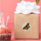 Papillon monarque orange et noir sur un autocollant couleur parchemin.