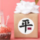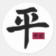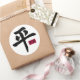 Autocollant blanc rond pour assortir notre carte "Peace 2" avec une image du caractère chinois pour la paix et un petit rectangle rouge qui contient les caractères pour la paix et l'amour. Voir collant vinyle taillé sur mesure, carte, enveloppe, étiquette de faveur et étiquette. Voir l'ensemble de la collection Sticker des Lumières dans les INVITATIONS | Section Stickers & Étiquettes.