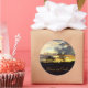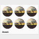 Cet autocollant en forme de Terre est un détail fabuleux à ajouter aux enveloppes et aux paquets pendant la saison des fêtes. C'est un rappel spécial de profiter de la nature et de toutes les choses merveilleuses que l'argent ne peut pas acheter. Photo d'un coucher de soleil prise à la périphérie de Toronto, Canada par RoseWrites et vendue dans son magasin Sousaby Zazzle.