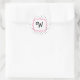 Un autocollant monogramme avec un arrière - plan de petits pois noirs sur blanc. Personnalisez avec votre premier cadre rose intérieur. Recherchez les articles correspondants chez Jill's Paperie.