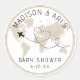 Ajoutez une touche de charme inspirée du voyage à votre baby shower grâce à cet autocollant circulaire de carte du monde, doté d'une carte de style vintage et d'un coeur de trajectoire de vol en pointillé. Personnalisé avec le nom des parents et la date de la douche, il est parfait pour sceller des enveloppes, décorer des sacs de faveur ou garnir des cupcakes. Un grand ajustement pour un "Little Explorer" ou l'aventure attend le thème baby shower!
