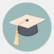 L'autocollant présente une conception minimaliste d'un capuchon de graduation. Le casquette est représenté avec des lignes épurées et des formes de base, capturant sa silhouette emblématique. Cette représentation simple mais reconnaissable symbolise la réussite scolaire et l'obtention du diplôme. Il s'agit d'un autocollant polyvalent qui peut être utilisé pour célébrer les réalisations ou décorer des objets liés aux festivités de remise des diplômes.