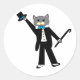 Un mignon chat gris aime danser sur son smoking, son chapeau et sa canne sur cet adorable autocollant. Allez Kitty, allez !