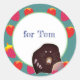 Un autocollant sur mesure avec fraises et mole, pour les fêtes d'enfants et les célébrations.