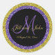 Versatile, monogrammed personnalisé élégant joint enveloppe de mariage avec un cercle de parties scintillant violet et or chatoyant, police de script élégant pour le nom de famille initial et la conception de mariée et mariée sur un arrière - plan noir. Ces autocollants monogrammes personnalisés peuvent être utilisés pour enregistrer les dates, les invitations de mariage et les cartes de remerciements. Aussi de grandes utilisations comme moderne, contemporaine glam mariage stickers faveur. Parties scintillant est un effet photo imprimé.