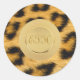 Autocollant rond avec l'image d'une magnifique fourrure de léopard ornée d'une plaque initiale en or personnalisable. Voir les confettis correspondants et le papier d'emballage. Consultez la collection complète de This & That Sticker dans la section CARDS, POSTCARDS & STICKERS.