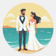 Comprend 20 petits autocollants sur une feuille. Belle illustration d'un couple en tenue mariage debout sur la plage au coucher du soleil, parfait pour les fêtes mariages.