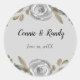 Rond Sticker Rose argent et Mariage feuille argent