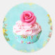 Rond sticker rose cupcake