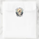 Cet autocollant présente St. Monica, patronne des femmes mariées, des mariages difficiles, des relations difficiles avec les enfants, et la conversion de la famille. Elle était la mère de saint Augustin et pria pour sa conversion. Saint Monica, priez pour nous !